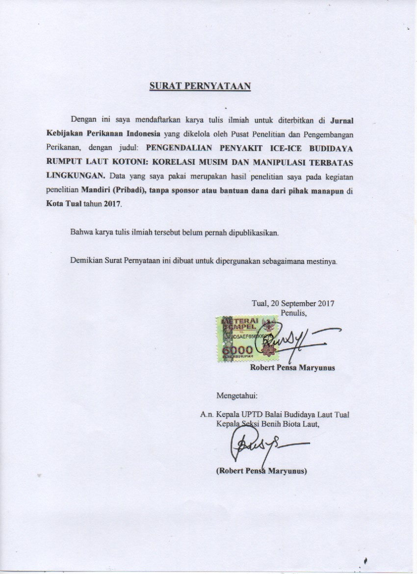 PENGENDALIAN PENYAKIT ICE-ICE BUDIDAYA RUMPUT LAUT, Kappaphycus alvarezii: KORELASI MUSIM DAN MANIPULASI TERBATAS LINGKUNGAN