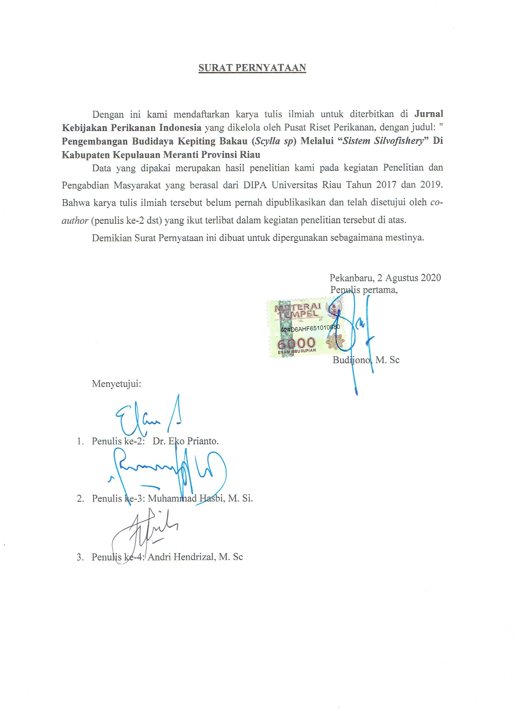 • Budijono Parni Dosen Jurusan Manajemen Sumberdaya Perairan, Fakultas Perikanan dan Kelautan, Universitas Riau