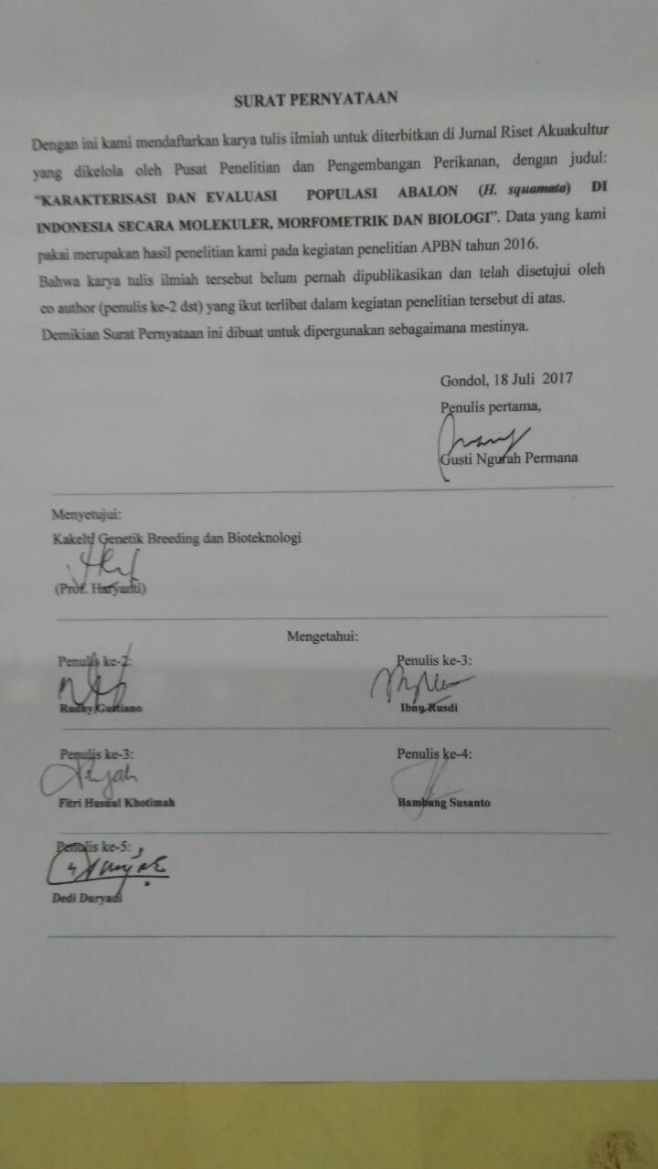 KARAKTERISASI DAN EVALUASI POPULASI ABALON Haliotis squamata SECARA MOLEKULER, MORFOMETRIK, DAN BIOLOGI