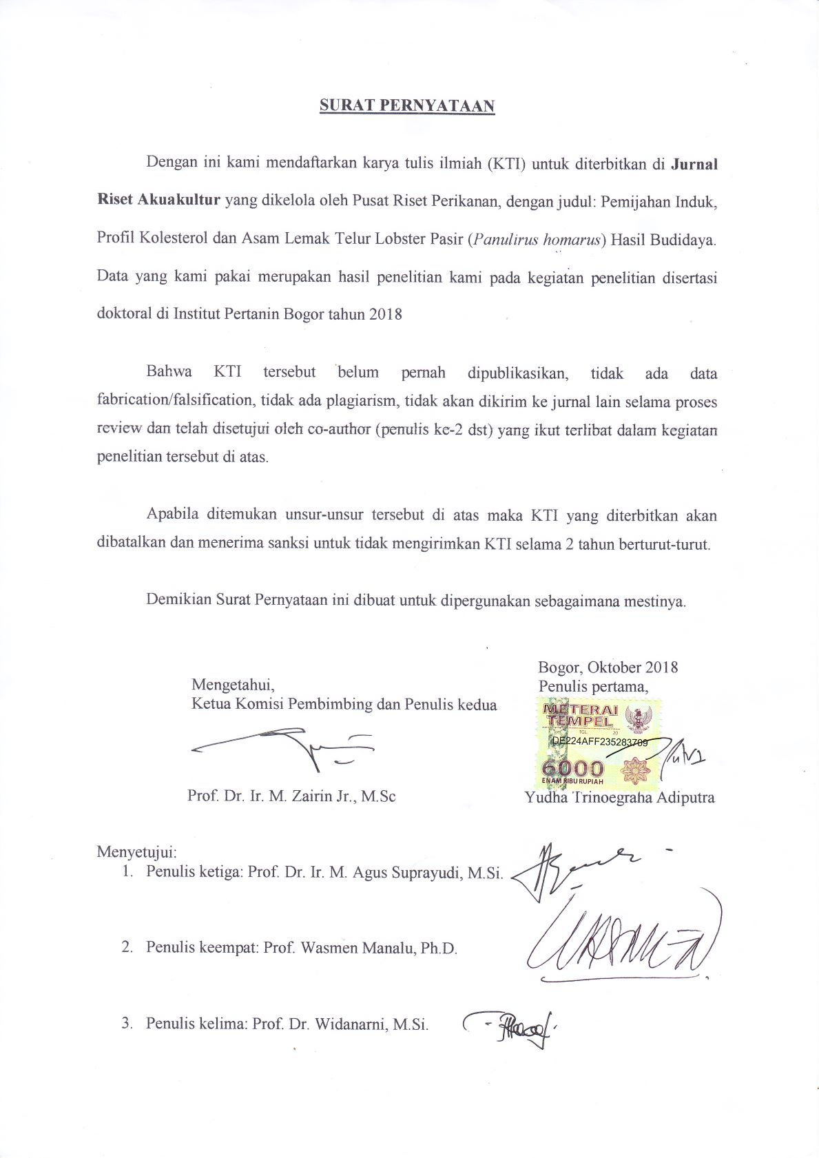 • Muhammad Agus Suprayudi Program Pascasarjana Ilmu Akuakultur Fakultas Perikanan dan Ilmu Kelautan Insitut Pertanian Bogor